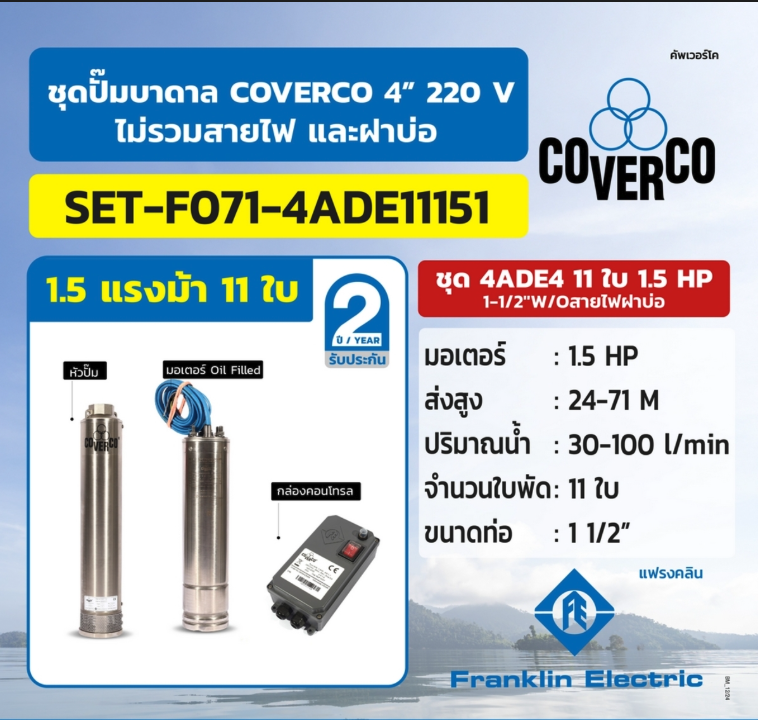FRANKLIN COVERCO ชุด 4ADE4 11ใบ 1.5HP 1-1/2"W/Oสายไฟฝาบ่อ